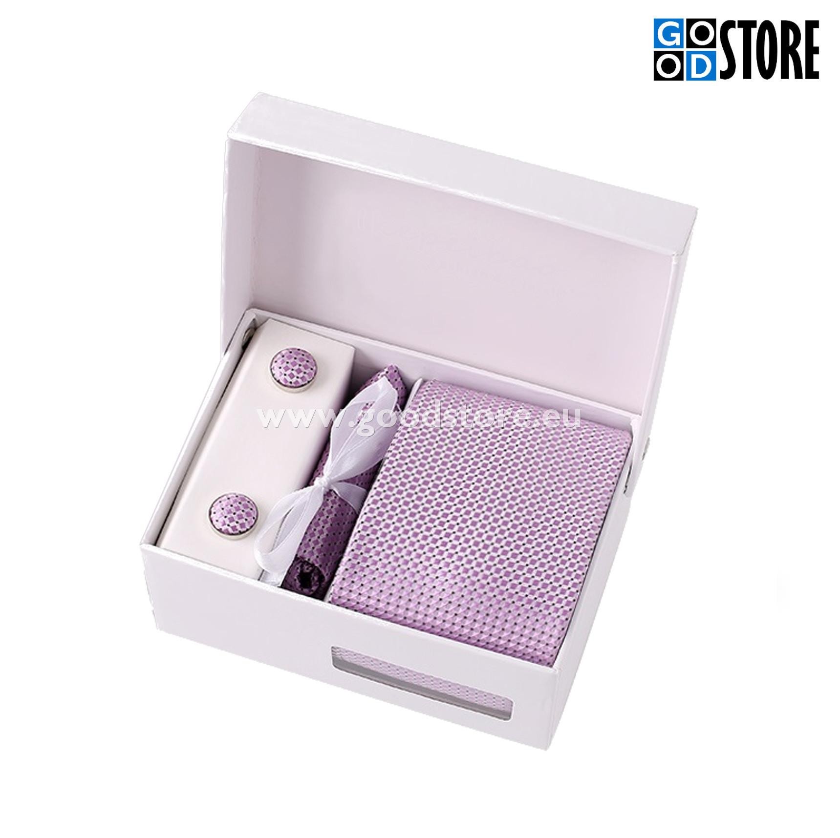 Kinkekarp lipsu, mansetinööpide, lipsunõela ja rinnataskurätikuga, roosa