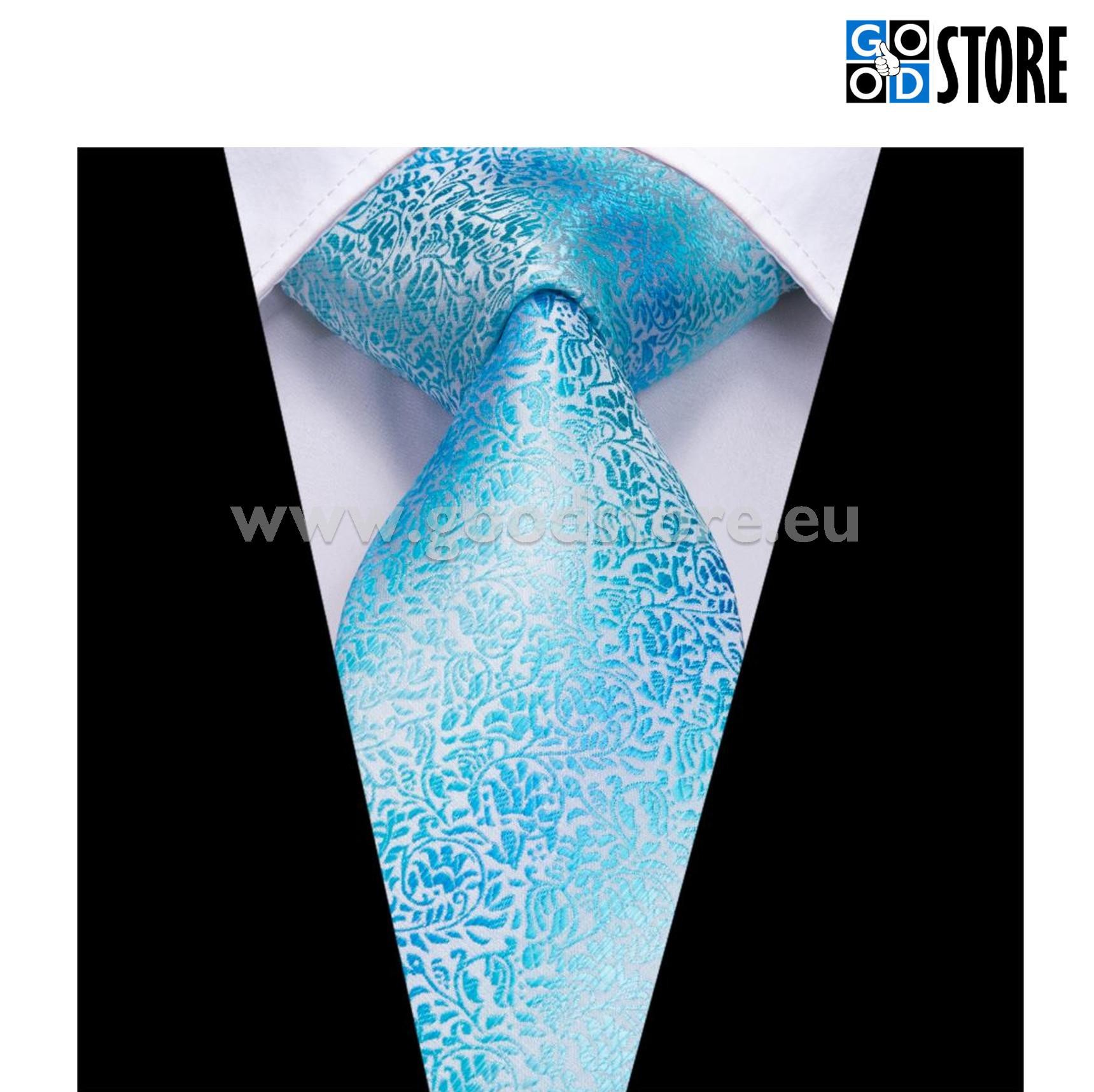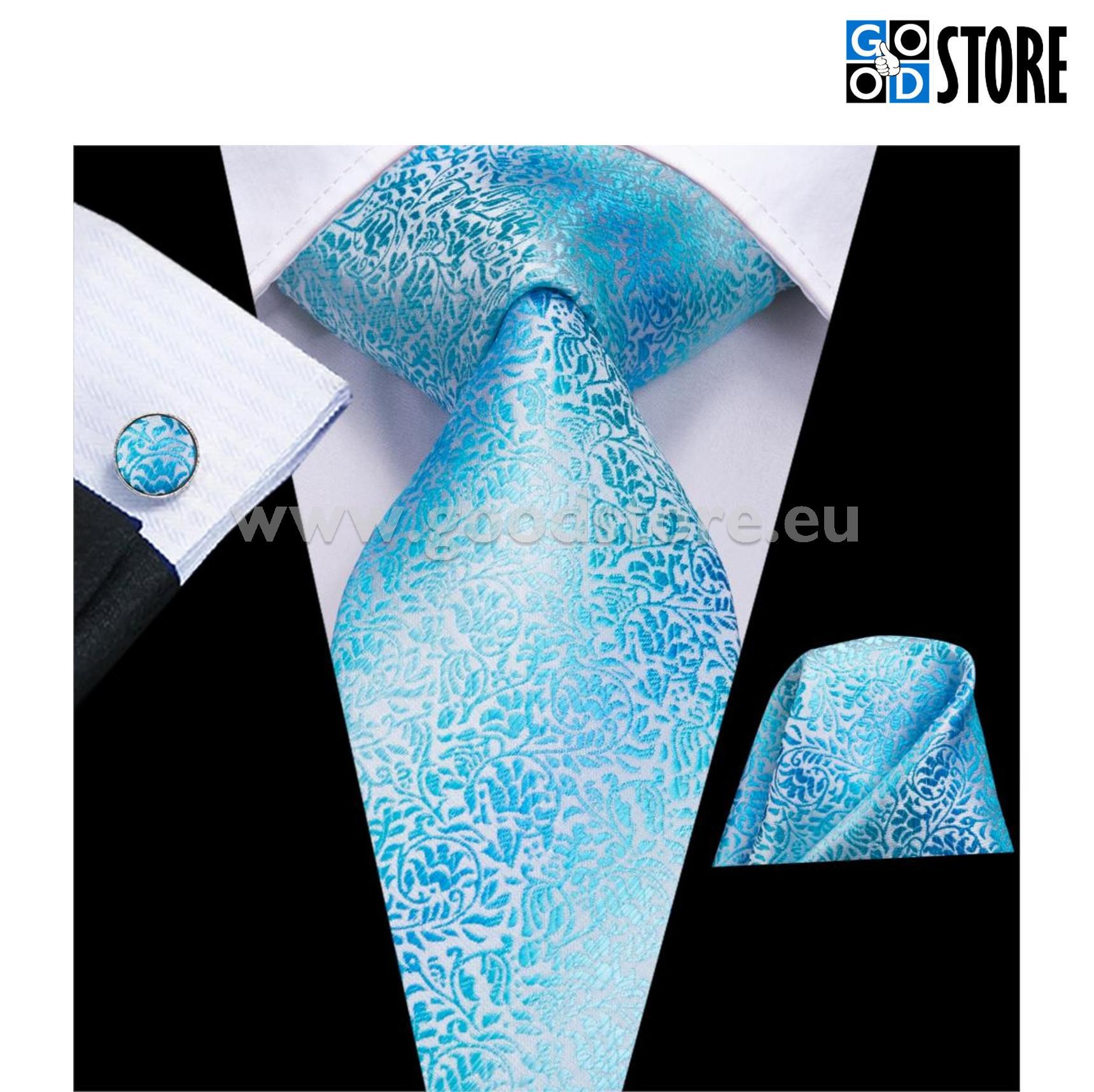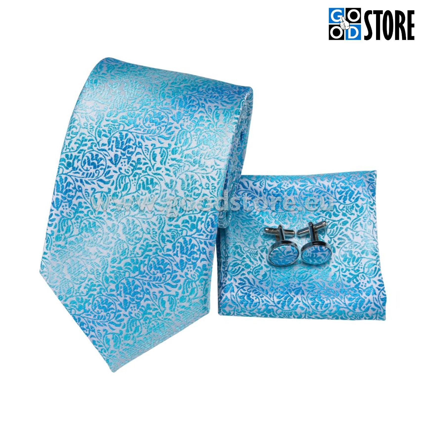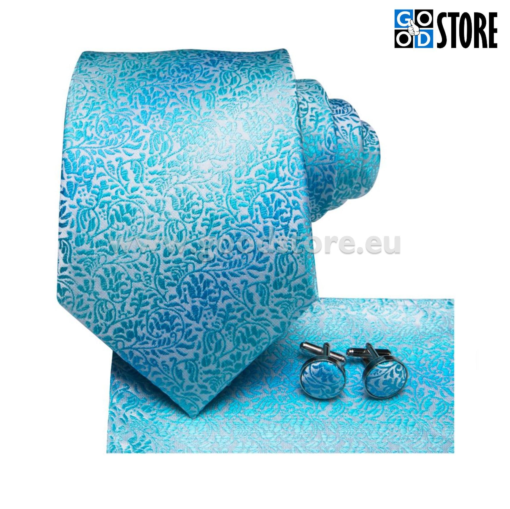 Luksuslik siidlipsu kinkekarp, mansetinööpide ja rinnarätikuga, kirgas helesinine