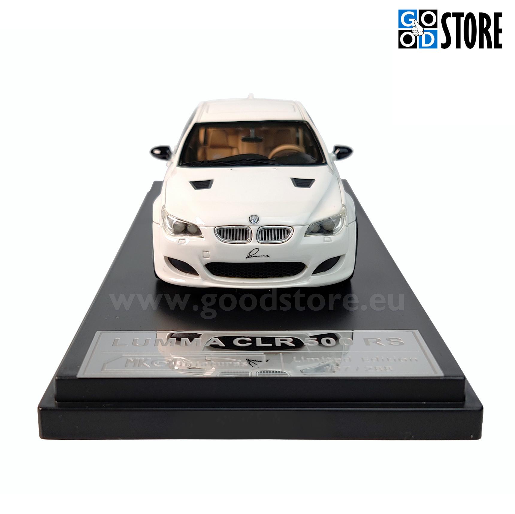 The LUMMA CLR 500 RS (BMW) model car produced by MK Miniatures has White body color and Yellow interior. The model is highly detailed collectors item and probably the highest quality 1:43 scale model car ever produced! This die-cast model vehicle is brand new and a rare gem indeed!