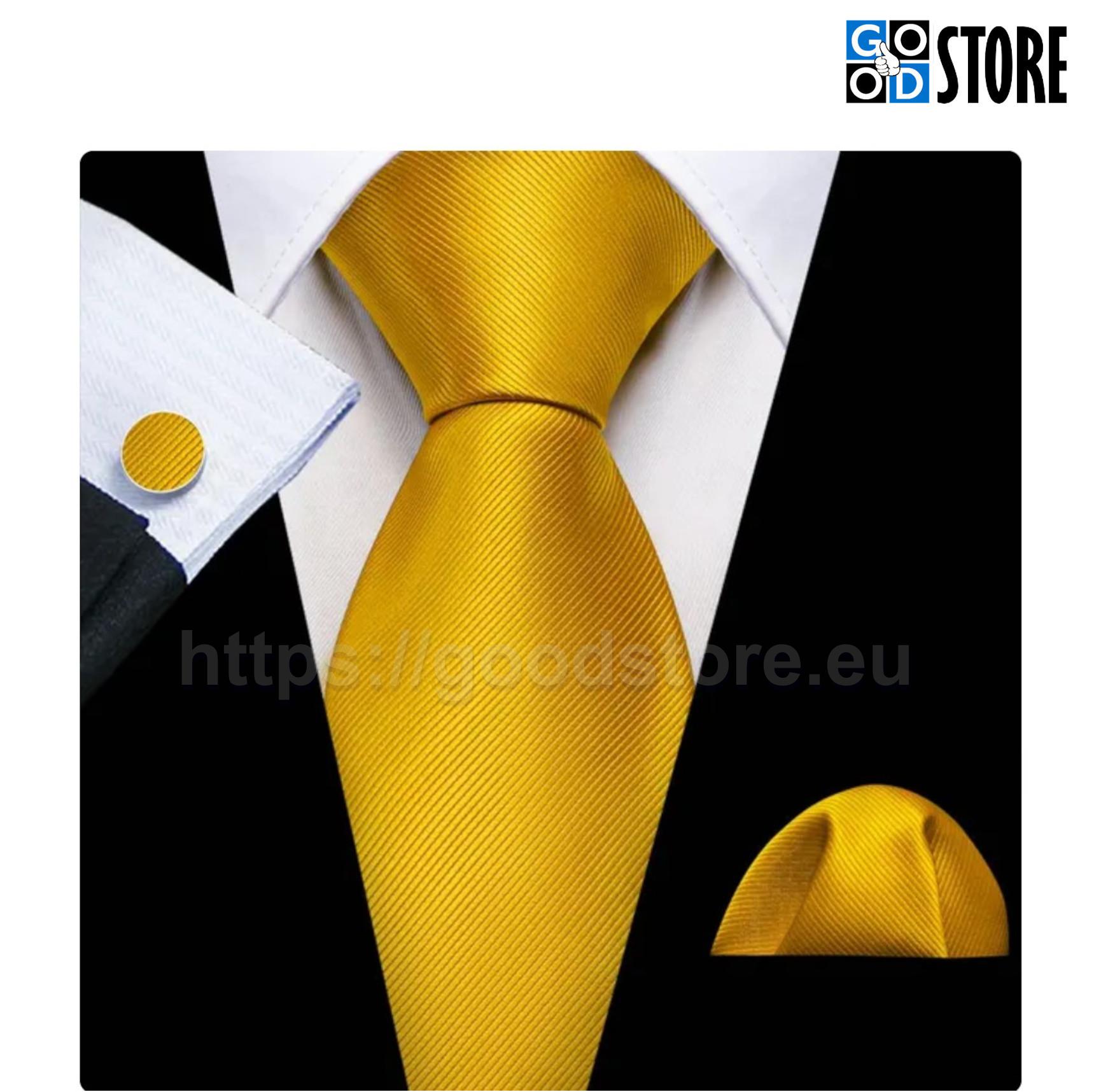 The set contain: 1 x Necktie, 1 x Handkerchief, 1 pair of Cufflinks